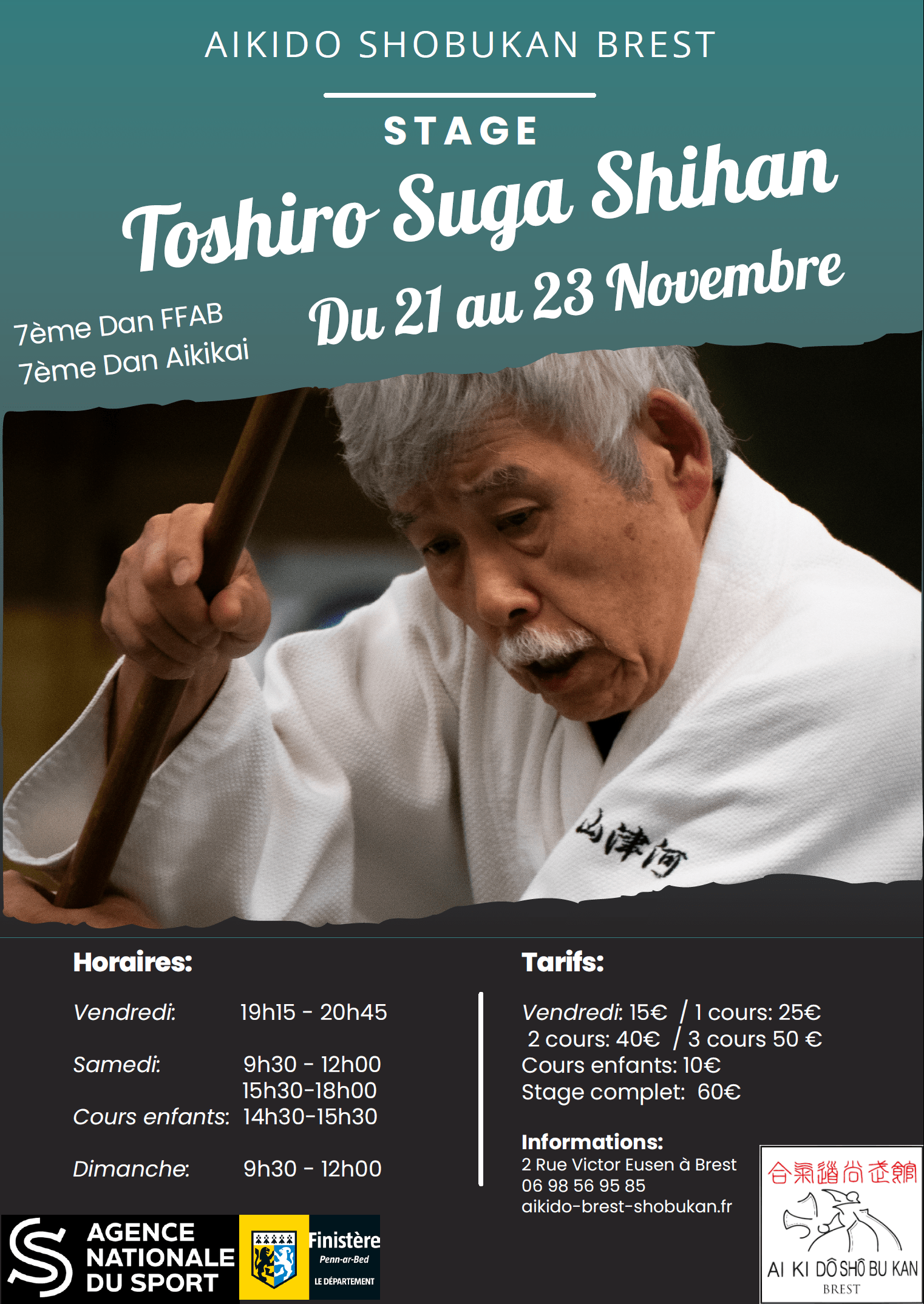 Stage Toshiro Suga 21-23 novembre 2025, Aïkido Shobukan